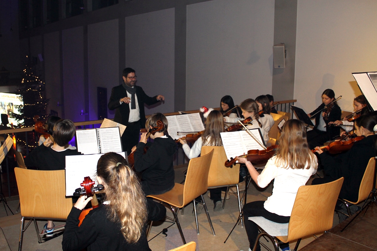 Unser 18-köpfiges Schülerorchester war am 22. Dezember 2025 eingeladen, beim jährlichen Benefizkonzert „Lichtblicke“ in Altach für die musikalischen Einstimmung zu sorgen. Im Stil einer Pastorale (Hirtenmusik) musizierten Streicher und Blockflöten und sorgten für einen weihnachtlichen Auftakt, bevor das große Konzert offiziell startete.